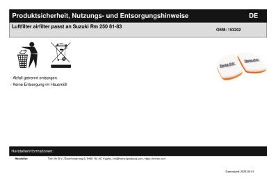 Titel: | Luftfilter airfilter passt an Suzuki Rm 250 81-83 |