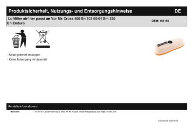 Titel: | Luftfilter airfilter passt an Vor Mx Cross 400 En 503 00-01 Sm 530 En Enduro |