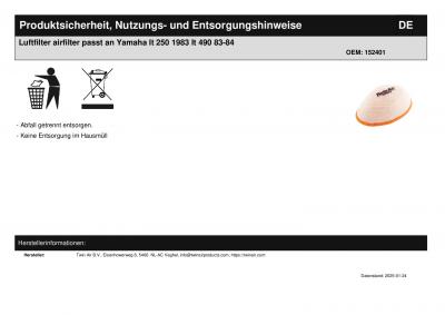 Titel: | Luftfilter airfilter passt an Yamaha It 250 1983 It 490 83-84 |