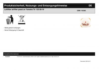 Titel: | Luftfilter airfilter passt an Yamaha Ttr 125 00-19 |