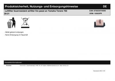 | Titel: | Luftfilter feuerresistent airfilter fire passt an Yamaha Tenere 700 20-21 |