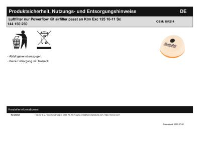 Titel: | Luftfilter nur Powerflow Kit airfilter passt an Ktm Exc 125 10-11 Sx 144 150 250 |