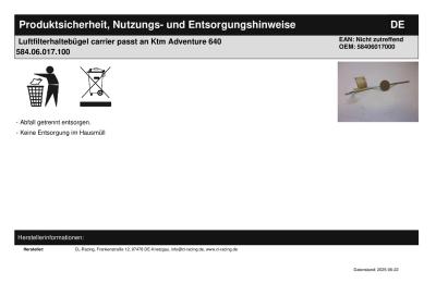 Titel: | Luftfilterhaltebügel carrier passt an Ktm Adventure 640 584.06.017.100 |