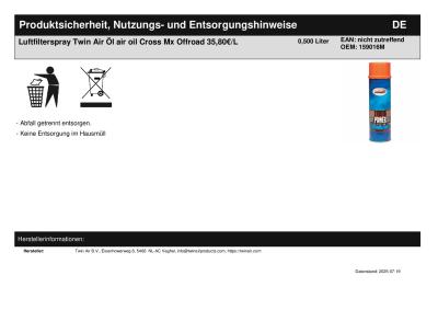 | Titel: | Luftfilterspray Twin Air Öl air oil Cross Mx Offroad 35,80/L |