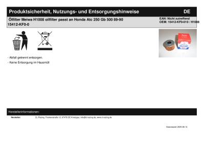 | Herstellernummer: | 15412-KF0-010 / H1008 |