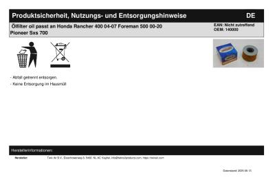 Titel: | Ölfilter oil passt an Honda Rancher 400 04-07 Foreman 500 00-20 Pioneer Sxs 700 |