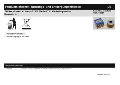 Titel: | Ölfilter oil passt an Honda Xl 250 600 84-87 Xr 400 96-06 passt an Kawasaki Kx |