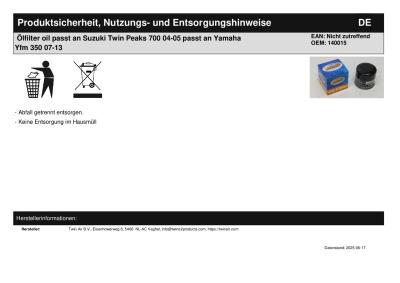Titel: | Ölfilter oil passt an Suzuki Twin Peaks 700 04-05 passt an Yamaha Yfm 350 07-13 |