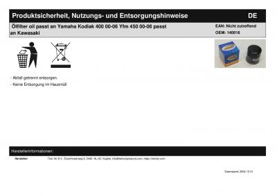 Titel: | Ölfilter oil passt an Yamaha Kodiak 400 00-06 Yfm 450 00-06 passt an Kawasaki |