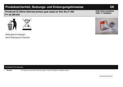 | Titel: | Primärrad 22 Zähne Zahnrad primary gear passt an Ktm Exc-F 250 771.32.000.022 |