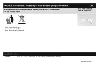 | Titel: | Rahmenschutz Rahmenprotektor frame guards passt an Honda Cr 125 95-97 250 weiß |