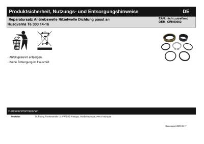 | Titel: | Reparatursatz Antriebswelle Ritzelwelle Dichtung passt an Husqvarna Te 300 14-16 |