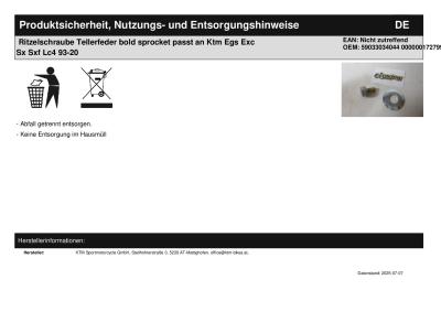 | Titel: | Ritzelschraube Tellerfeder bold sprocket passt an Ktm Egs Exc Sx Sxf Lc4 93-20 |
