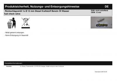 | Titel: | Rückschlagventil 1x Ø 12 mm Diesel Kraftstoff Benzin Öl Wasser fuel check valve |