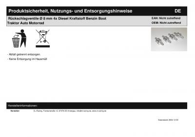 | Titel: | Rückschlagventile 4x Ø 8 mm fuel check valve Diesel Kraftstoff Boot Traktor Auto |