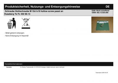 | Titel: | Schraube Hohlschraube M 10x1x19 hollow screw passt an Husaberg Te Fc 450 96-13 |