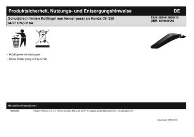 | Titel: | Schutzblech hinten Kotflügel rear fender passt an Honda Crf 250 14-17 Cr450f sw |