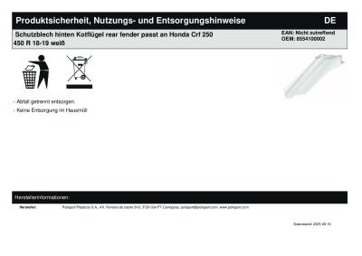 | Titel: | Schutzblech hinten Kotflügel rear fender passt an Honda Crf 250 450 R 18-19 weiß |
