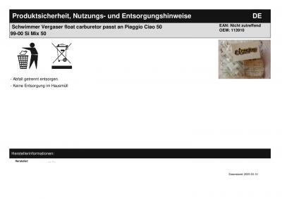 | Titel: | Schwimmer Vergaser float carburetor passt an Piaggio Ciao 50 99-00 Si Mix 50 |