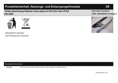 Titel: | Hinterradschwinge Rahmen frame passt an Ktm Smc Smc-R Sxf 450 2009 |