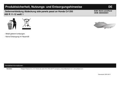 | Titel: | Seitenverkleidung Abdeckung side panels passt an Honda Crf 250 450 R 11-12 weiß 1 |
