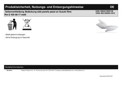 | Titel: | Seitenverkleidung Abdeckung side panels passt an Suzuki Rmz Rm-Z 450 08-17 weiß |