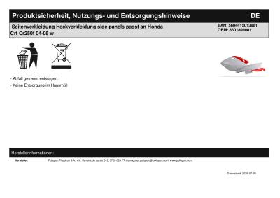 | Titel: | Seitenverkleidung Heckverkleidung side panels passt an Honda Crf Cr250f 04-05 w |