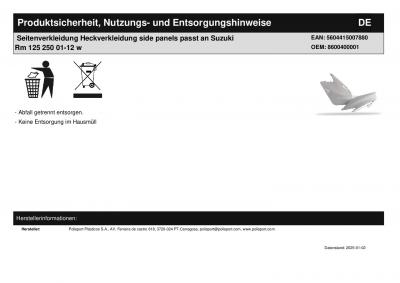 | Titel: | Seitenverkleidung Heckverkleidung side panels passt an Suzuki Rm 125 250 01-08 w |