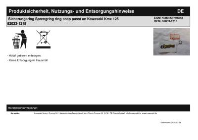 | Titel: | Sicherungsring Sprengring ring snap passt an Kawasaki Kmx 125 92033-1215 |