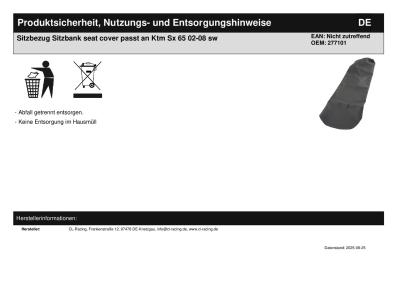 Titel: | Sitzbezug Sitzbank seat cover passt an Ktm Sx 65 02-08 sw |