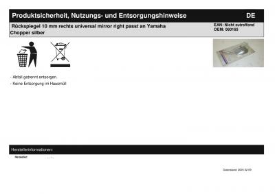 | Titel: | Rückspiegel 10 mm rechts universal mirror right passt an Yamaha Chopper silber |