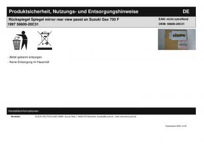 Rückspiegel Spiegel mirror rear view passt an Suzuki Gsx 750 F 1997 56600-20C31