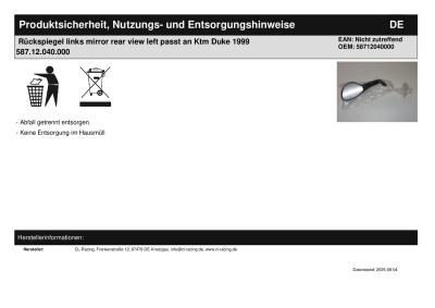 | Titel: | Rückspiegel links mirror rear view left passt an Ktm Duke 1999 587.12.040.000 |