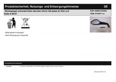 | Titel: | Rückspiegel universal links rearview mirror left passt an Ktm Lc4 Duke II 99-07 |