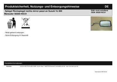 | Titel: | Spiegel Rückspiegel rechts mirror passt an Suzuki Vz 800 Marauder 56500-45C51 |