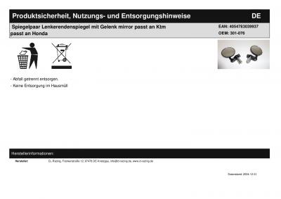 | Titel: | Spiegelpaar Lenkerendenspiegel mit Gelenk mirror passt an Ktm passt an Honda |