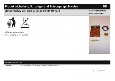 | Titel: | Starthilfe factory start passt an Honda Cr 80 85 1996 gelb |