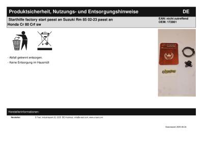 | Titel: | Starthilfe factory start passt an Suzuki Rm 85 02-23 passt an Honda Cr 80 Crf sw |