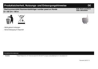 | Titel: | Startnummerntafel Nummerntafelträger number passt an Honda Cr r 85 Crf r 150 w |