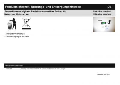 Titel: | Drehzahlmesser digitaler Betriebsstundenzähler Enduro Mx Motocross Motorrad sw |