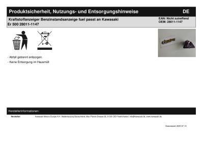 Titel: | Kraftstoffanzeiger Benzinstandsanzeige fuel passt an Kawasaki Er 500 28011-1147 |