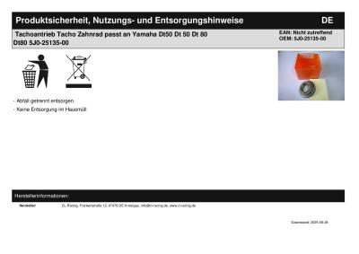 Tachoantrieb Tacho Zahnrad passt an Yamaha Dt50 Dt 50 Dt 80 Dt80 5J0-25135-00
