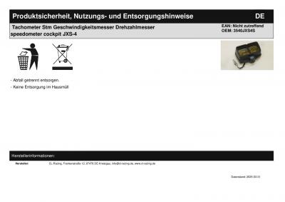 | Titel: | Tachometer Stm Geschwindigkeitsmesser Drehzahlmesser speedometer cockpit JXS-4 |