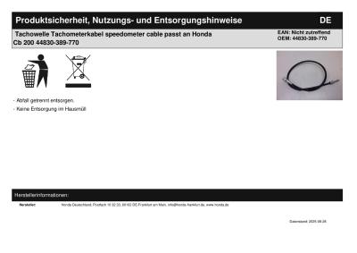 | Titel: | Tachowelle Tachometerkabel speedometer cable passt an Honda Cb 200 44830-389-770 |