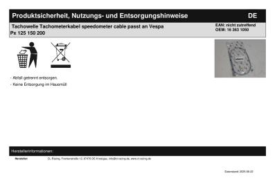 | Titel: | Tachowelle Tachometerkabel speedometer cable passt an Vespa Px 125 150 200 |