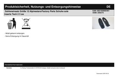 Titel: | Sohleneinsatz Größe 12 Alpinestars/Factory Parts Schuhe sole inserts Tech 2 3 sw |