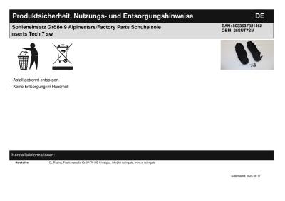 | Titel: | Sohleneinsatz Größe 9 Alpinestars/Factory Parts Schuhe sole inserts Tech 7 sw |
