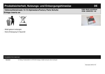 Titel: | Vektorsohleneinsatz 14-15 Alpinestars/Factory Parts Schuhe Einlage inserts sw |