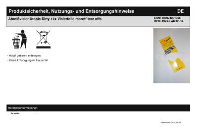 Titel: | Abreißvisier Utopia Dirty 14x Visierfolie rearoff tear offs |