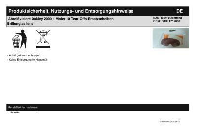 Titel: | Abreißvisiere Oakley 2000 1 Visier 10 Tear-Offs-Ersatzscheiben Brillenglas lens |